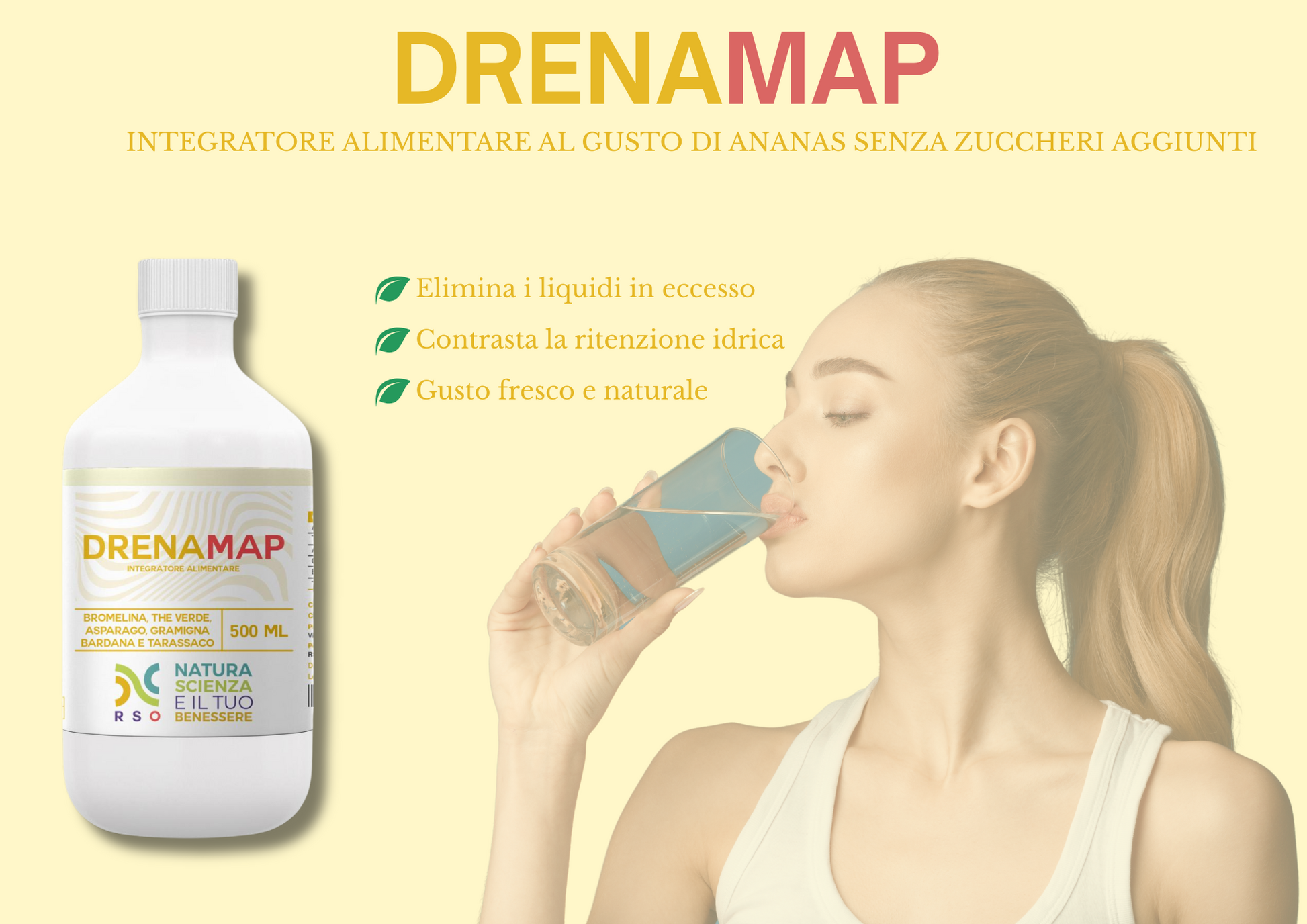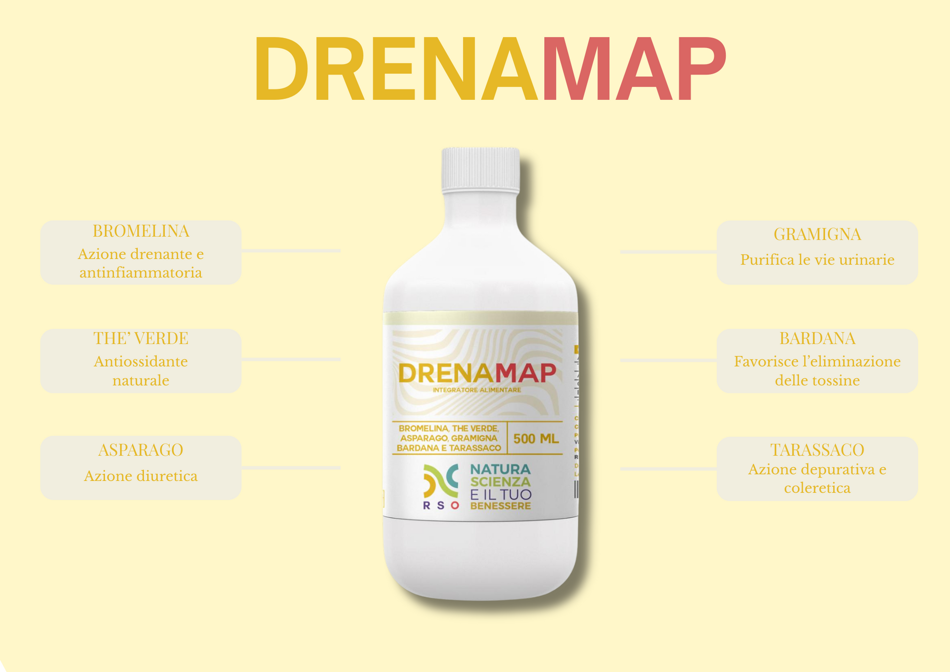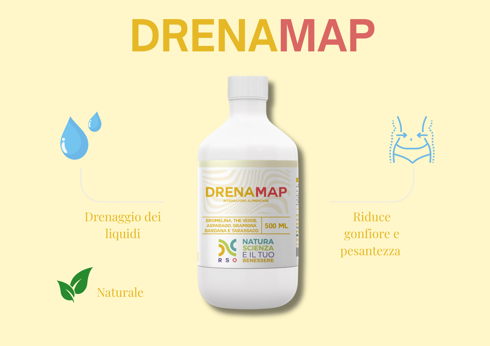 Drenamap is useful all year round and especially during the changes of season, when you want to recover energy and improve your physical shape. The blend of plant ingredients present in the product helps to: eliminate waste and toxins; remove excess extracellular fluids; fight the overproduction of radical molecules; assist low-calorie diets aimed at weight loss.